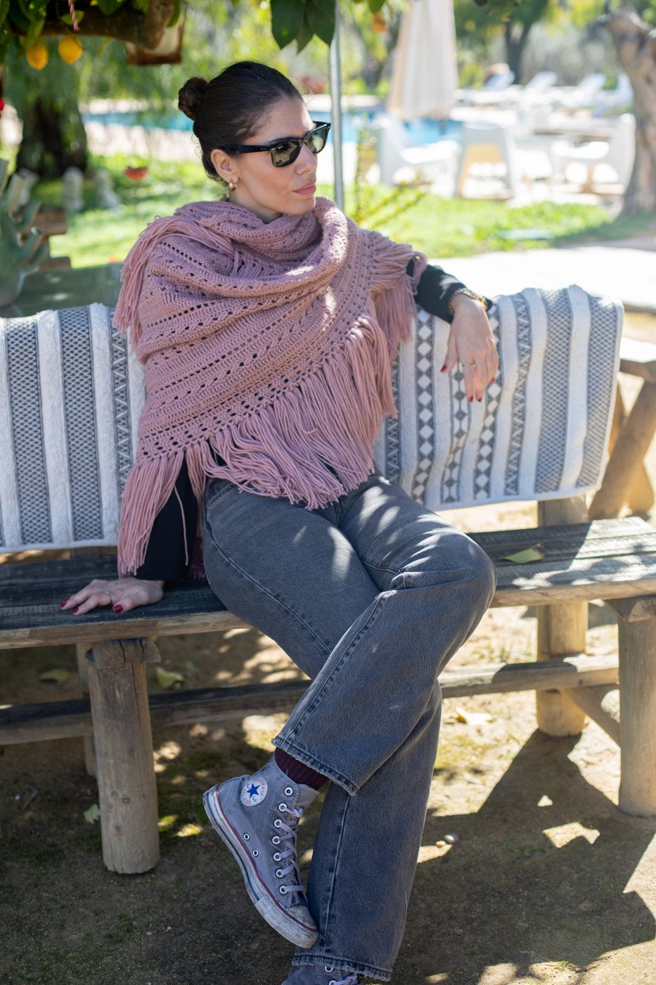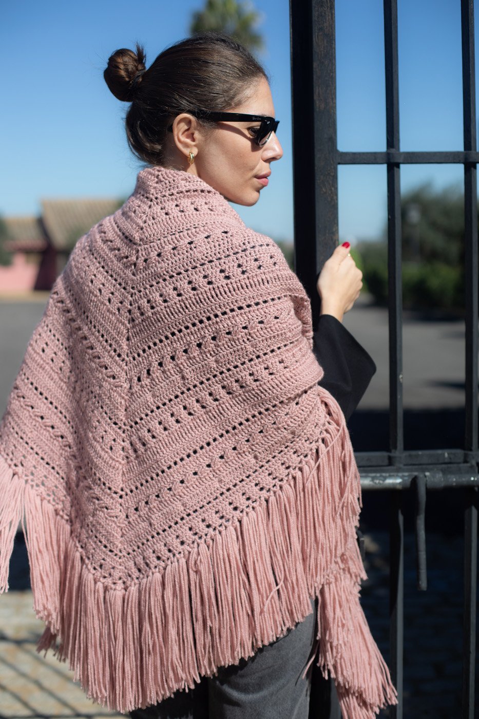 Mantón artesanal de lana ecológica en relieve, suave, cálido y muy especial. Su textura lo hace único para looks diarios y eventos. Gran variedad de colores.