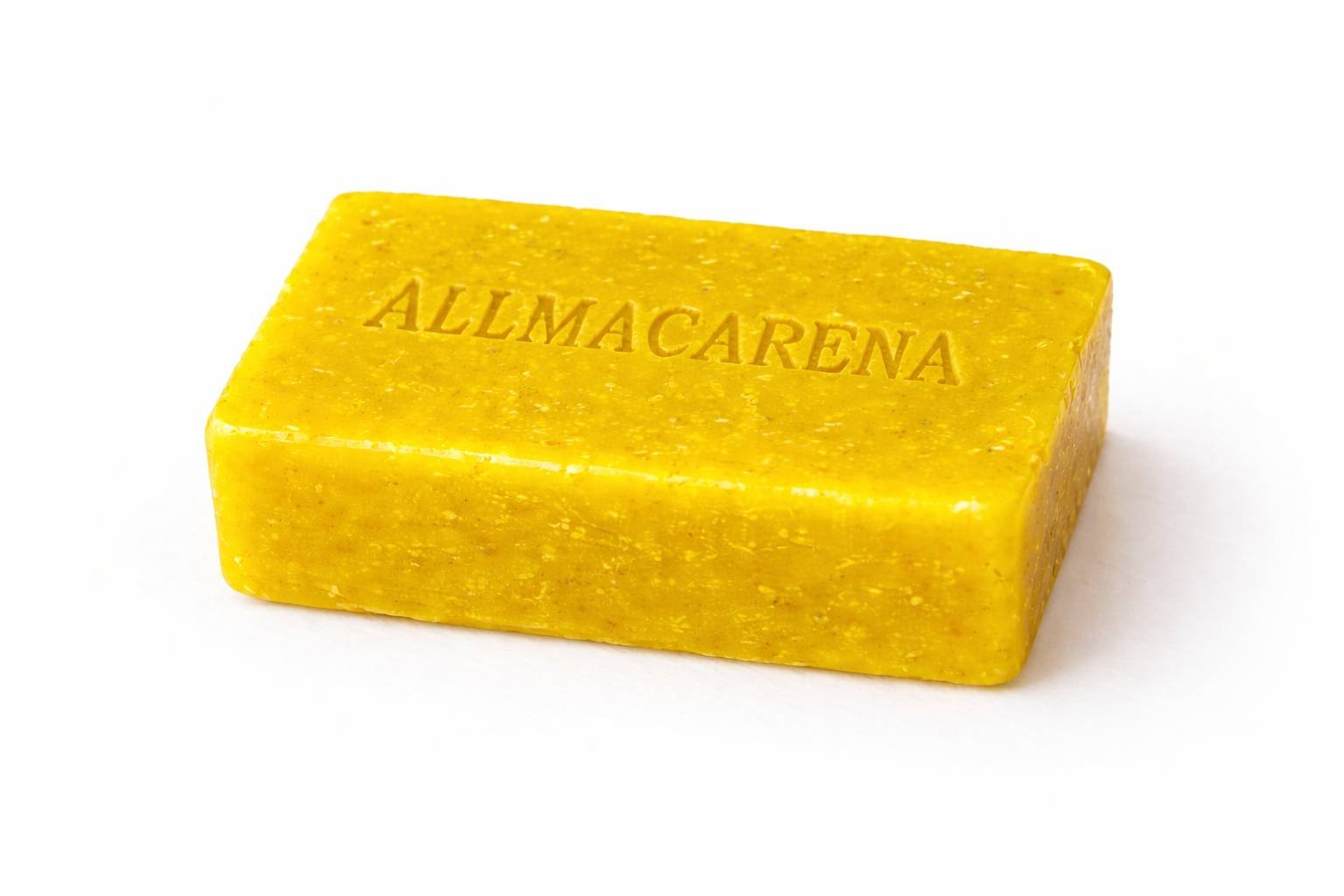 Jabón Artesanal Natural de SAL DEL HIMALAYA. Sal del Himalaya y azahar. Exfoliante. Refuerza el proceso de renovación celular. Acción exfoliante e hidratante con aceite de almendras. Aporta minerales. (amarillo flúor)